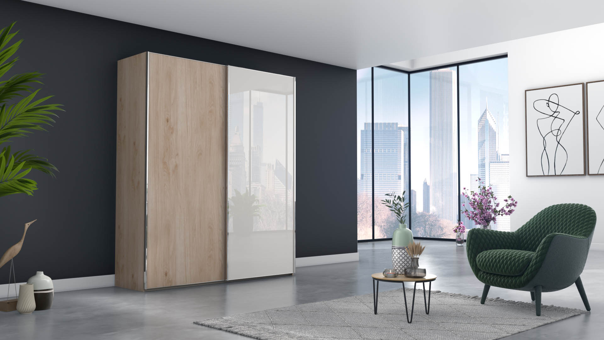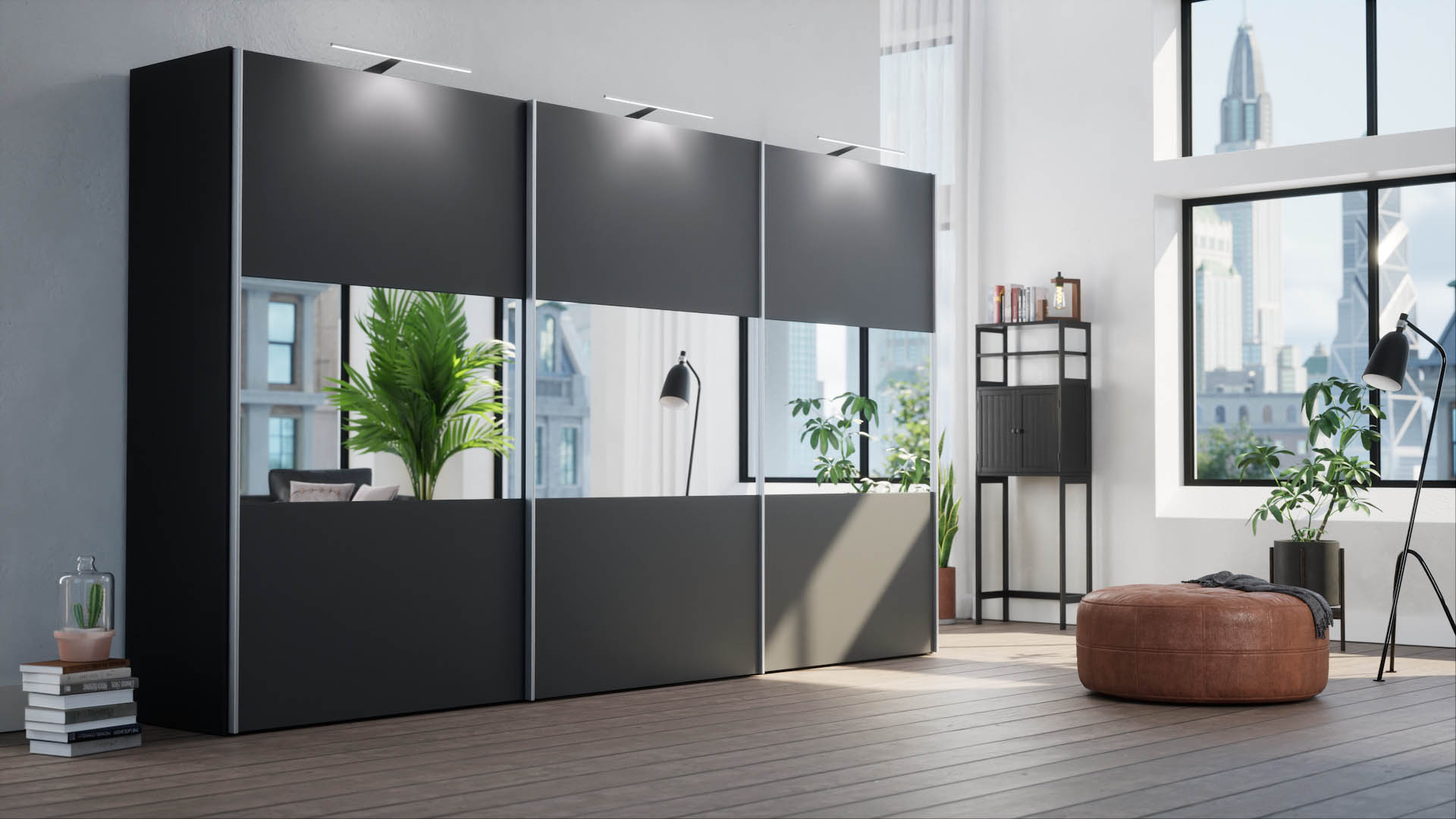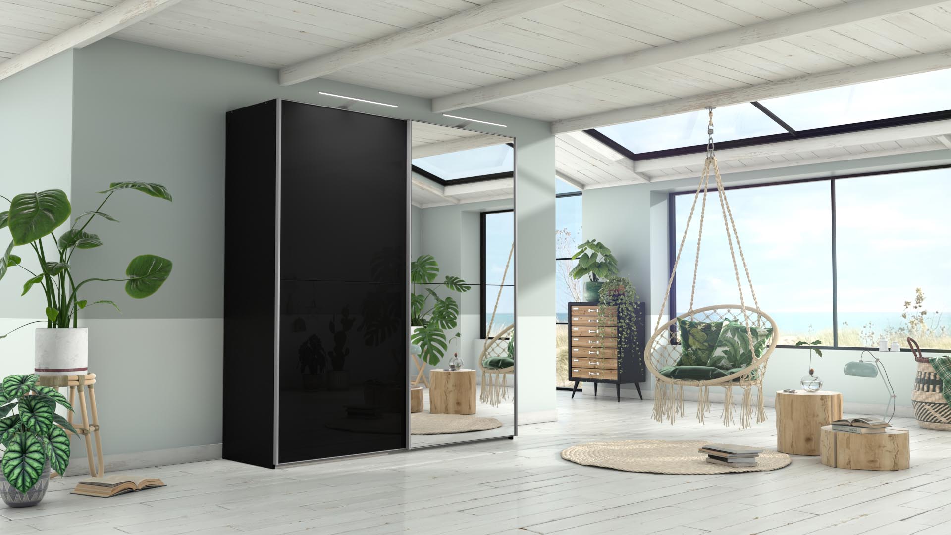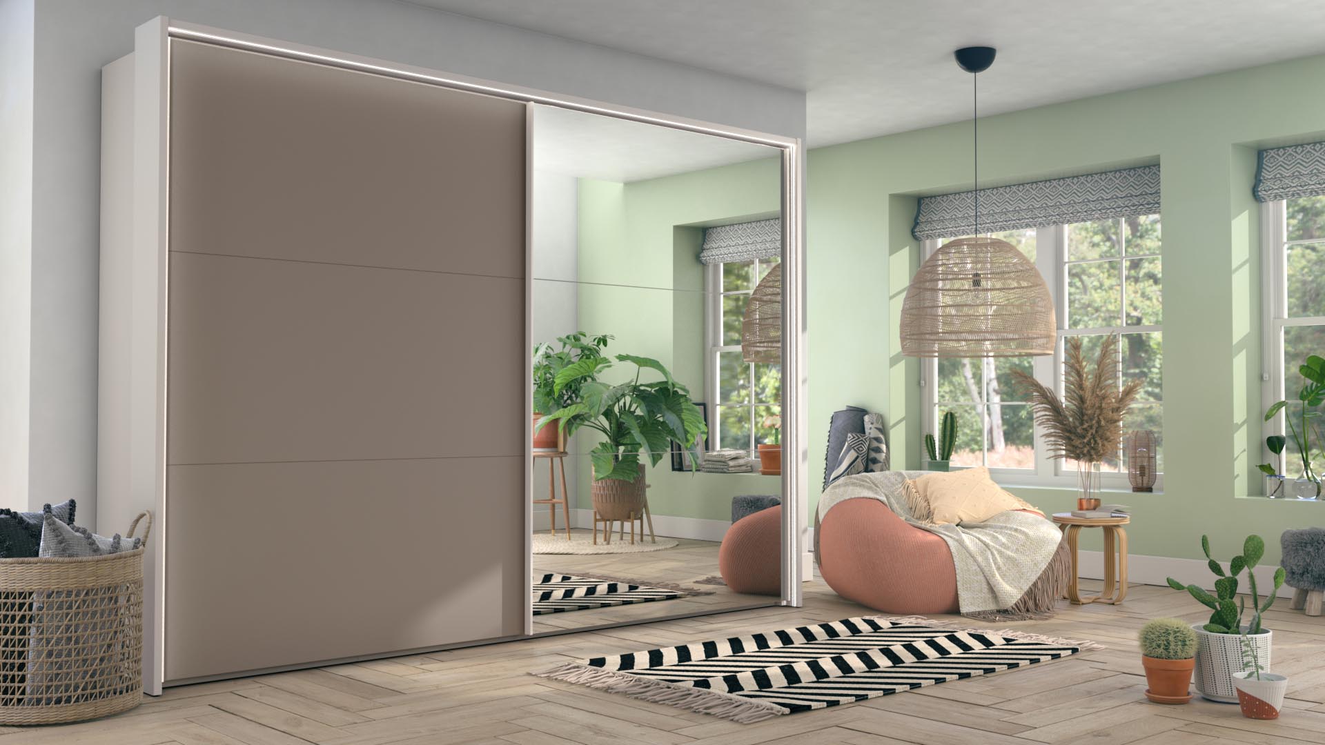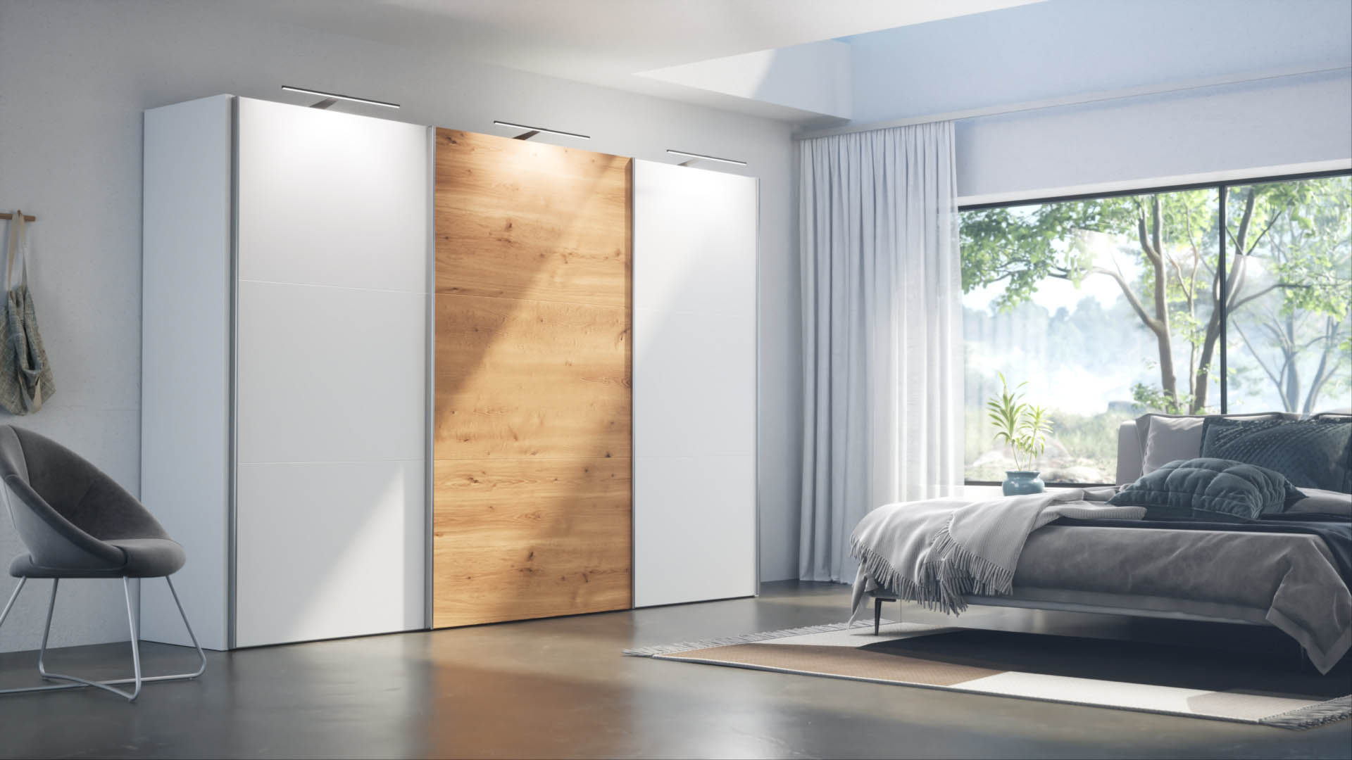 Slaapkamerweb has an enormous collection of wardrobes. In order to be able to present these wardrobes properly, we designed a couple of rooms, one per collection. In these rooms, the customer can customize the wardrobe to his or her taste. Door panels, side panels, door handles, lighting, sliding doors or hinged doors, everything is visualized in their online configurator. Look at a tiny selection of all the images we produced for the slaapkamerweb online configurator.